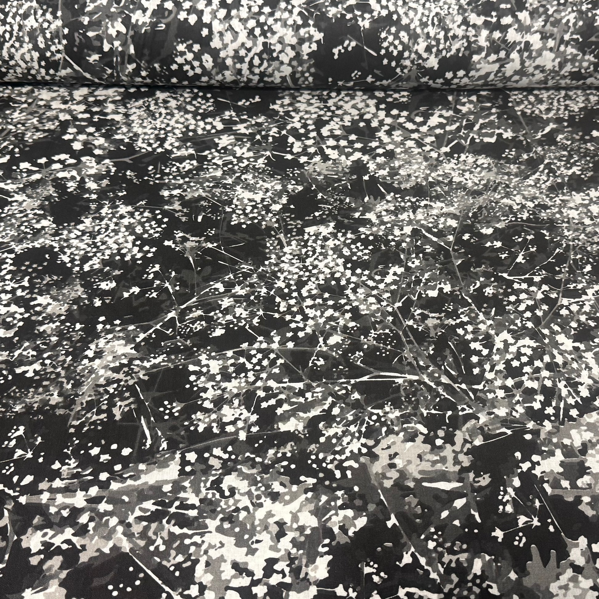 Midnight Blossom Abstract Floral Wide Back Fabric – Black | 108” Wide | 100% Cotton