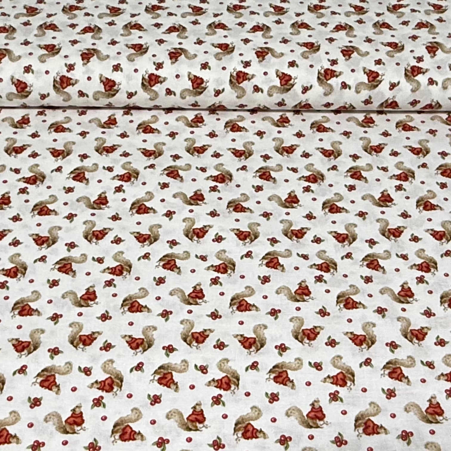 Winter Squirrel Berry Print Fabric – 100% Cotton | 45” Wide
